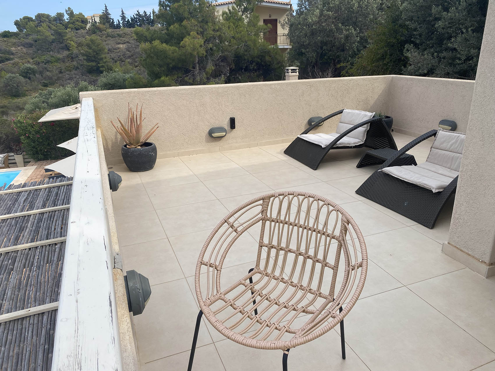 The master bedroom is located at the 1st floor along with an en-suite bathroom and has access to a private terrace, with amazing view, ideal for privacy and book reading