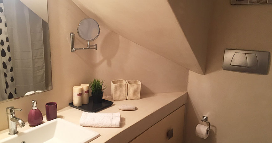 The master bedroom is located at the 1st floor along with an en-suite bathroom and has access to a private terrace, with amazing view, ideal for privacy and book reading