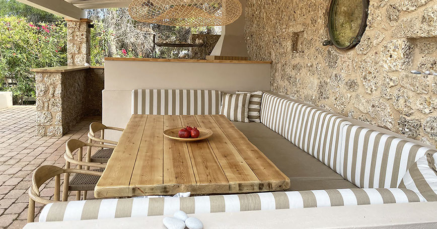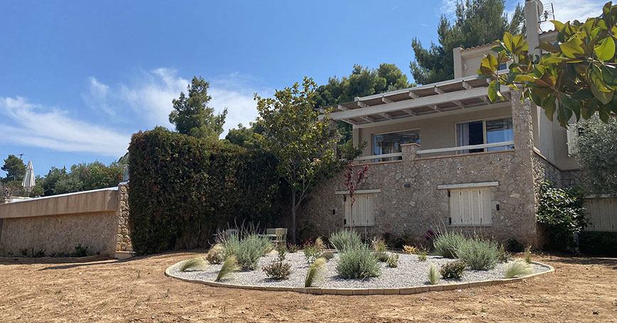 The Villa is within walking distance from a remote and picturesque beach where you can enjoy the sun and the sea. There are many more beaches in the area where you can reach them either by car, bike or you can even rent a boat.